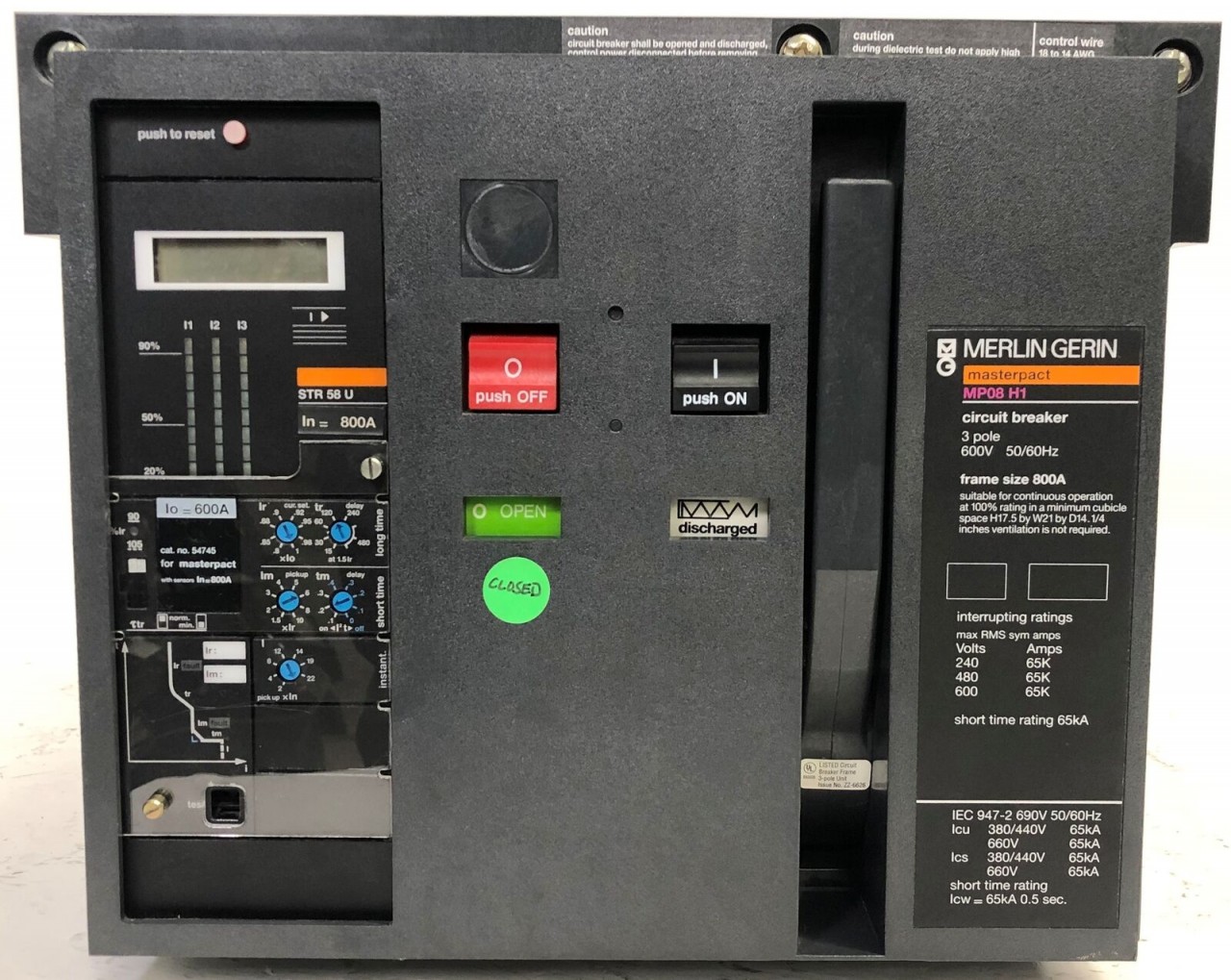 Loading... Please wait...Merlin Gerin Masterpact MP08H1 800A/600VAC 3-Pole Air Circuit Breaker